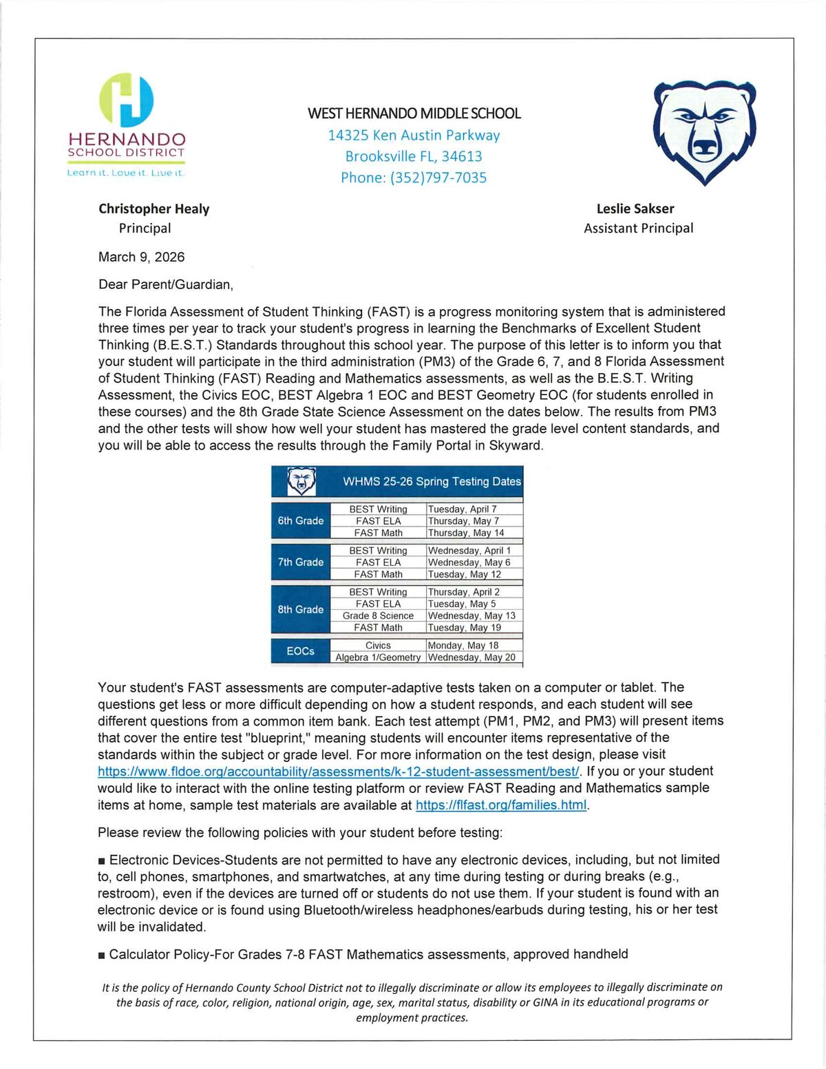FAST & EOC Testing Dates